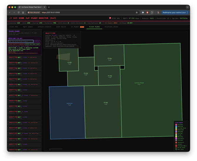 Sorunun boyutu sırf aygıt denetimiyle hudutlu değildi. Azdoufal, sistemdeki robotların canlı görüntü ve ses akışlarına erişebildiğini ayrıyeten aygıtların oluşturduğu 2 boyutlu mesken planlarını görüntüleyebildiğini belirtti. Bununla birlikte IP adreslerine de ulaşılabiliyor. Hasebiyle aygıtların bulunduğu pozisyonlar yaklaşık olarak tespit edilebiliyor.