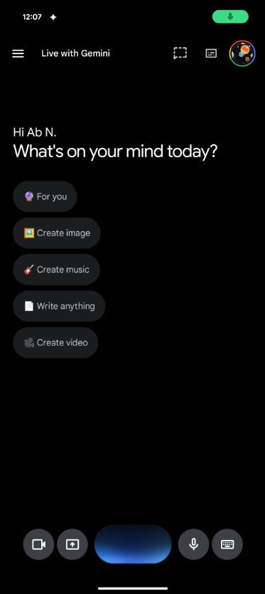 Gemini Live artık tam ekran yerine Gemini uygulaması ana sayfasını kaplayan bir arayüzle kullanıcıların karşısına çıkıyor.