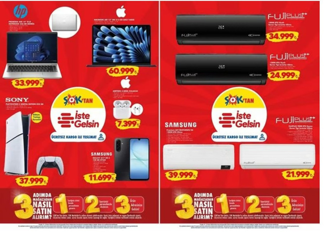 ŞOK marketlerin hafta için aktüel kataloğunda dizüstü bilgisayarlardan tam kablosuz kulaklıklara, PlayStation 5 konsolundan akıllı telefonlara, inverter klimalardan elektrikli mutfak aletlerine kadar farklı eserler bulmak mümkün oluyor.